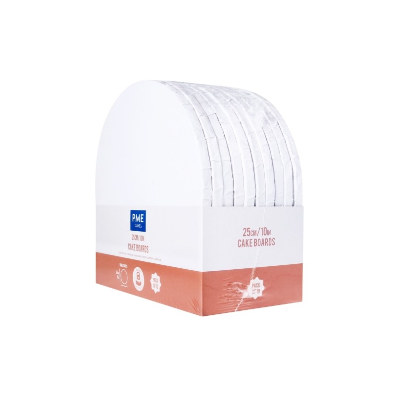 Set 10 levných bílých kulatých desek PME 25 cm je ideální sada pro ty, kteří potřebují mnoho dortů, musí mít vždy dort desku
