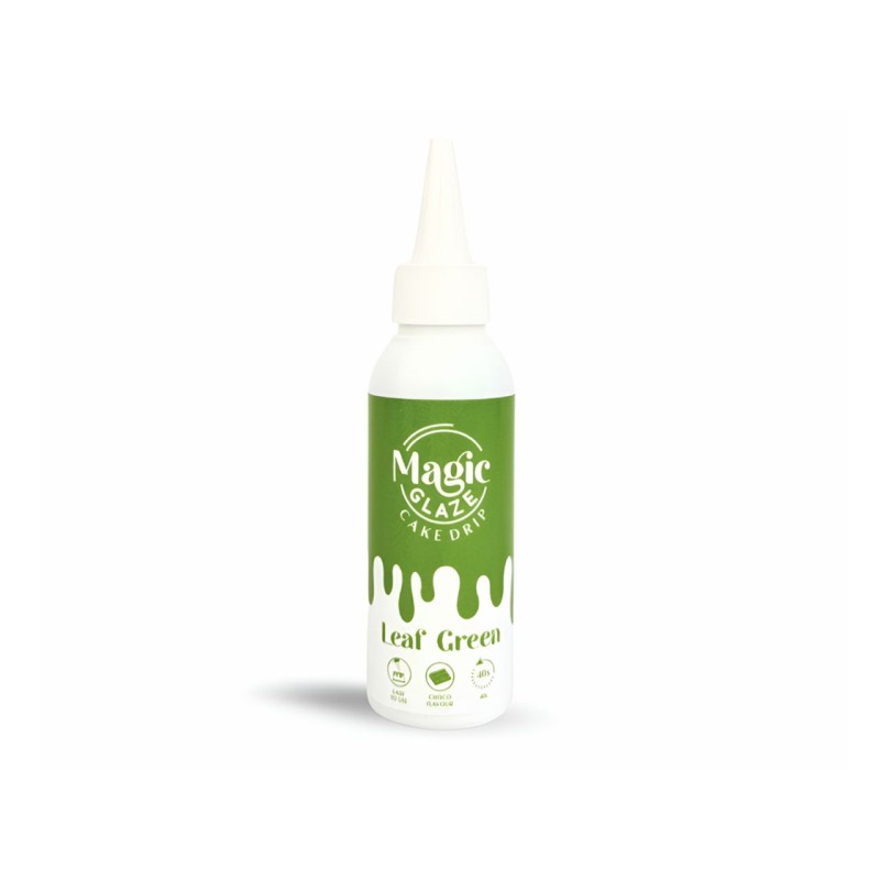 Green Leaf Magic Drip Glazure 120g je kryt v připravené krémy, ideální pro vytváření zelených a přírodních dekorací na odkapávací koláče, svatební dort, košíčky, sušenky a zmrzlinu.