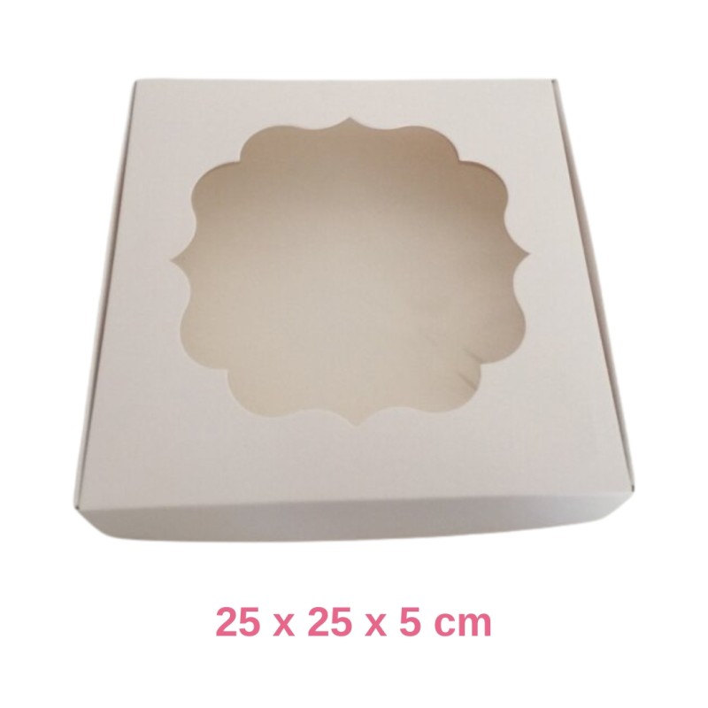Die Cookies-Box 20 x 20 x 5 cm Weiß mit Fenster ist ideal für die Verpackung und Präsentation von Keksen, Keksen und getrockneten Desserts auf elegante und professionelle Weise.