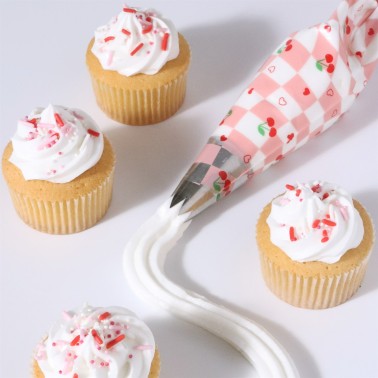 The 12 sac set à few disposable 30 cm with vintage cherries fantasy is ideal for decorating sweets and desserts with a retro, creative and well-kept style.
