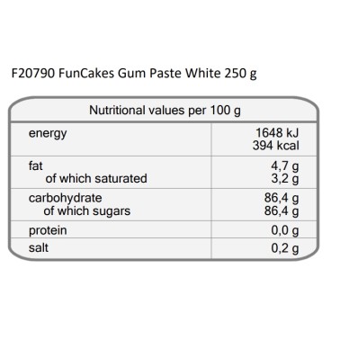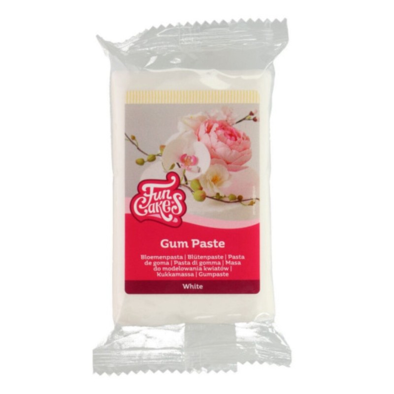 Gum Coller Funcakes Bianca 250 grammes est la pâte de fleurs, c'est-à-dire pâte de caoutchouc sans gluten.