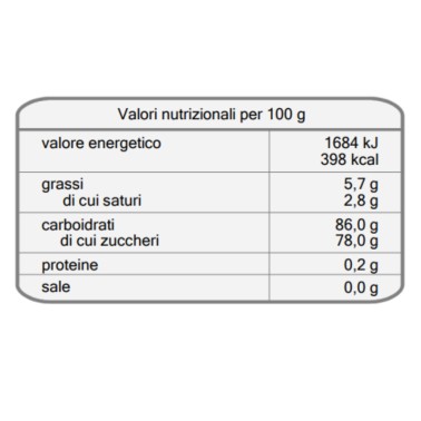 Carbohydrates: 86,0 g, de quels sucres: 78,0 g