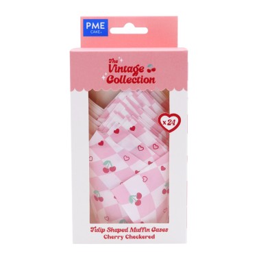 Coupes de tulipe Vintage de 24 pièces Cerises PME Ils sont parfaits pour faire du cupcake et des muffins avec charme rétro et décoratif.