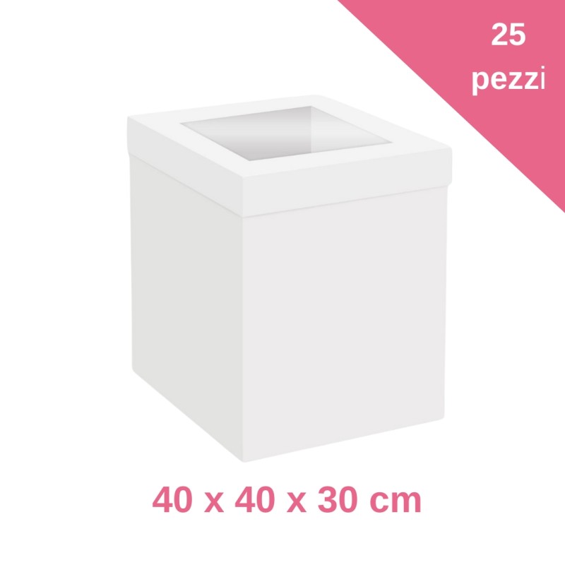 Définir 25 boîtes pour gâteau blanc avec une fenêtre de 40 × 40 × 30 cm est un ensemble parfait pour les gâteaux de grande taille de Garndi Taille pour des gâteaux élevés