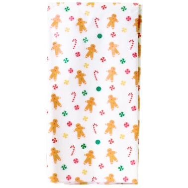 Realizzata in carta alimentare resistente, ogni foglio è decorato con allegri omini di pan di zenzero, bastoncini di zucchero e dettagli festivi su sfondo bianco: un design classico ma giocoso che scalda il cuore e impreziosisce qualsiasi dono fatto a mano.